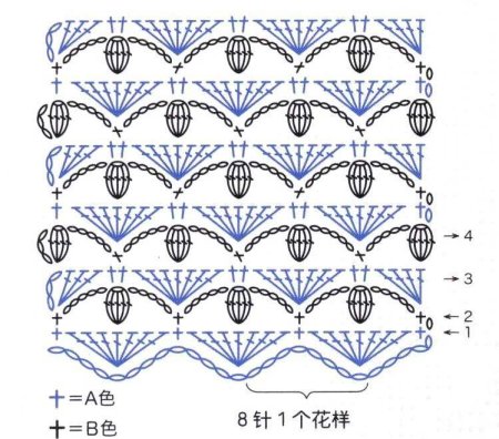 ![Схемы вязания крючком ажурных узоров для кофт]()