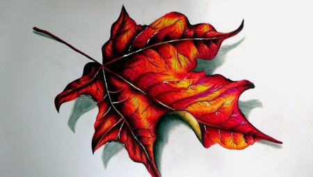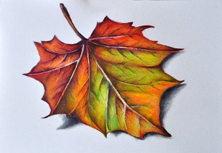 Кленовый лист цветными карандашами