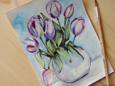 Рисование тюльпаны в вазе