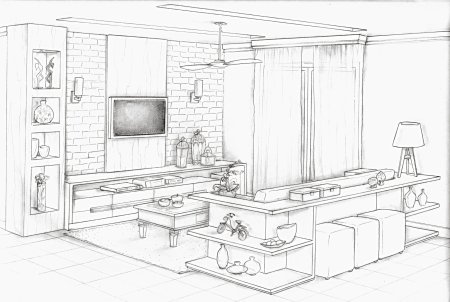 Гостиная карандашом
