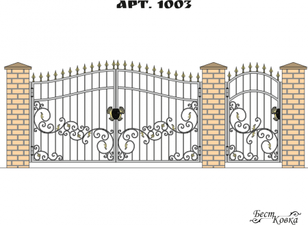 Ворота кованые двустворчатые с калиткой чертеж