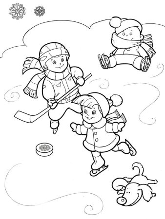 Раскраска дети на коньках зимой