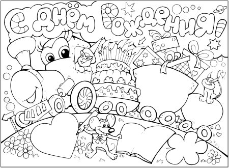 Раскраска поздравление с днем рождения