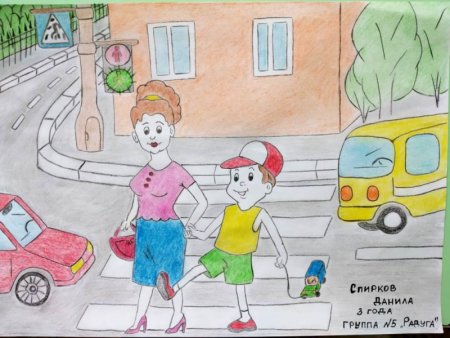 Текст: "Рисунки детей на тему безопасности на дороге - яркие и познавательные иллюстрации, которые передают важные правила поведения для обеспечения безопасности на улицах. Эти творения юных художников привлекают внимание и вдохновляют на активное осознание правил дорожного движения. Путешествие в мир этих рисунков помогает детям лучше понять опасности на дороге, развивать навыки самостоятельности и ответственности, а также формировать правильное поведение на улице."