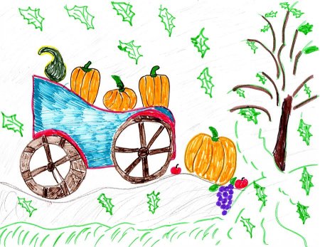Этот рисунок олицетворяет радость и изобилие праздника урожая. На нем изображены живописные поля, на фоне которых возвышается солнце, символизируя благодатное время сбора плодов земли. Разнообразие ярких цветов и сочных оттенков передают богатство и разнообразие урожая. В центре композиции расположены купавшиеся в солнечных лучах фрукты и овощи, наполненные энергией и жизнью. Рисунок создает атмосферу радости, благодарности и праздничного настроения, призывая нас не только наслаждаться плодами земли, но и ценить их и беречь.