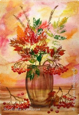 Рисование ваза с осенними листьями