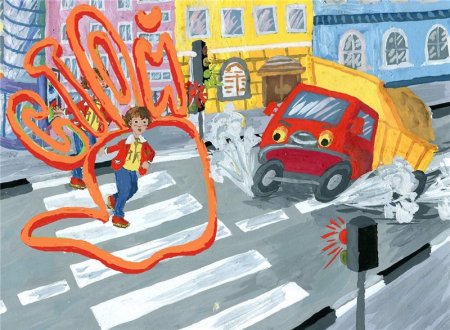 Изображение, посвященное движению безопасности, включает в себя символичные элементы и эмоции, передающие важность соблюдения правил и мер безопасности на дороге. На рисунке можно увидеть яркие цвета, отражающие энергию и активность, а также изображения людей, автомобилей и пешеходов, которые демонстрируют правильное поведение на дороге. В центре внимания стоит предупредительный знак или символ, напоминающий о необходимости следить за скоростью, быть внимательным и предусмотрительным во время движения. Рисунок напоминает нам о том, что безопасность - это ответственность каждого участника дорожного движения.