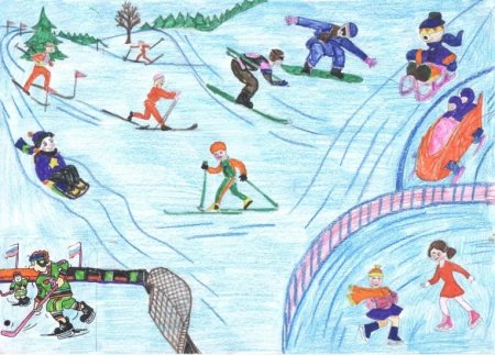 Детские рисунки зимние виды спорта