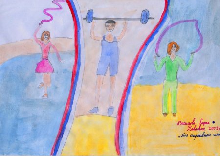 Детский рисунок на тему спортивная семья