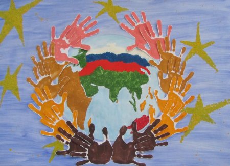 Рисунок в садике на тему "дружба народов" иллюстрирует гармоничное сосуществование различных этнических групп, объединенных общими ценностями. На нем изображены яркие и красочные персонажи, символизирующие разные нации, которые счастливо играют и общаются вместе. Этот рисунок является прекрасным воплощением толерантности, уважения и солидарности между людьми разных культур и национальностей.