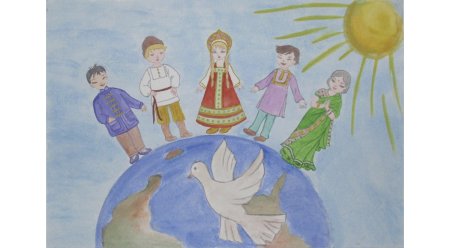 Данный рисунок символизирует идею дружбы и единства между различными народами мира. Он изображает людей, представляющих разного происхождения и культуры, объединенных вокруг общего идеала добра и гармонии. Яркие цвета и разнообразные элементы демонстрируют богатство и многообразие культурных традиций, которые могут существовать в гармонии друг с другом. Рисунок подчеркивает важность уважения, толерантности и понимания в создании мирной и равноправной среды для всех народов мира.
