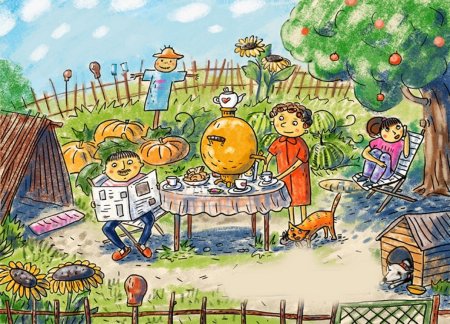 Отдых на даче рисунок