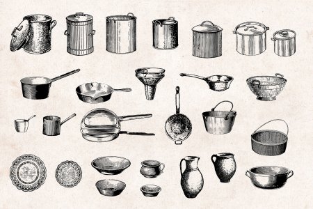 Предметы домашней утвари по иллюстрации