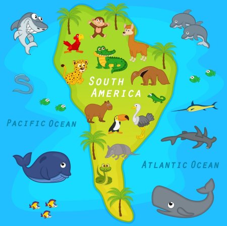 Географическая карта с животными для детей