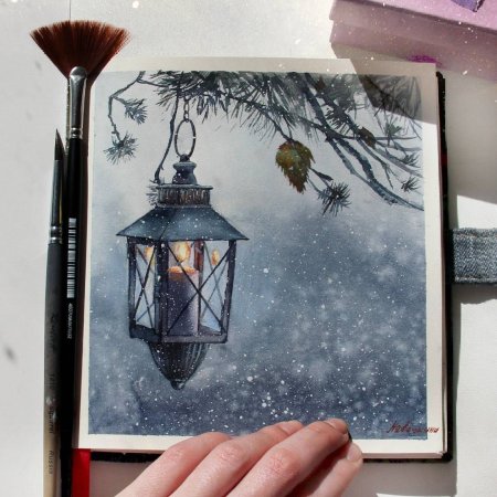 Зимний пейзаж в скетчбук