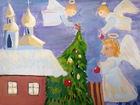 Уникальный рисунок, воплощающий атмосферу радости и светлого праздника - Рождества. Яркие цвета и теплая гамма создают особую атмосферу, наполняющую сердца радостью и любовью. В центре композиции изображены символы Рождества - елка, подарки и счастливая семья, которые являются воплощением духа этого праздника. Рисунок передает весь магический настрой и дарит положительные эмоции, стимулируя восприятие праздника в каждом зрителе.