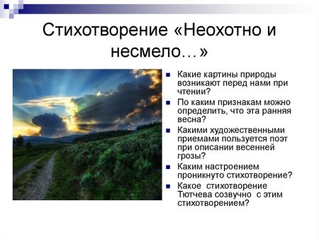 Стихотворение Тютчева неохотно и несмело