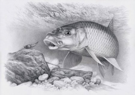 Рыба простым карандашом