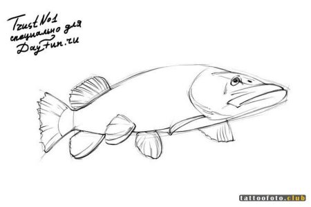 Щука рисунок для детей карандашом