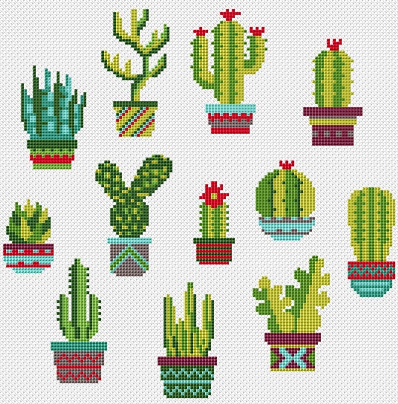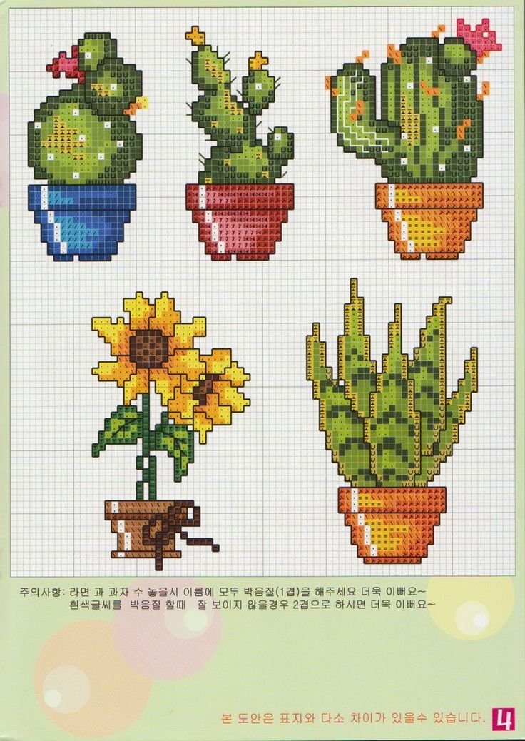 Схема вышивки крестом маленькие кактусы