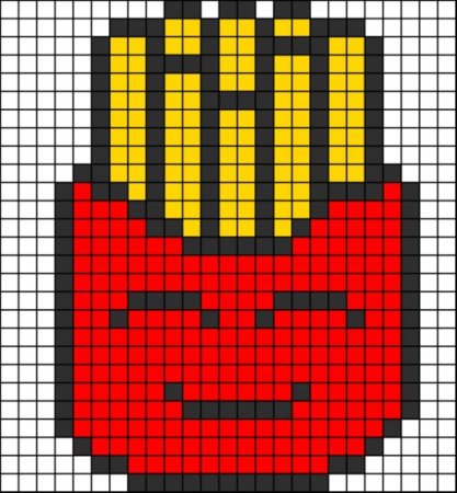 Познакомьтесь с нашей коллекцией фаст фуда в миниатюре! Наши небольшие клеточные рисунки представляют разнообразные виды быстрой еды, от гамбургеров до пиццы, от хот-догов до фри. Они идеальны для использования в декоре столовой, на кухне или в ресторане. Наслаждайтесь маленькими шедеврами и добавьте веселья и стиля в ваше пространство с нашими фаст-фуд рисунками по клеточкам!