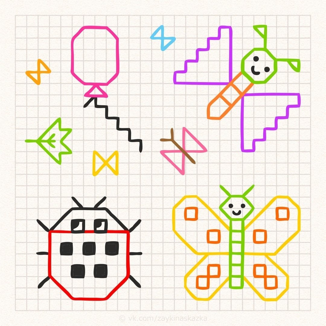 Графический диктант для дошкольников 6-7 лет по клеточкам насекомые