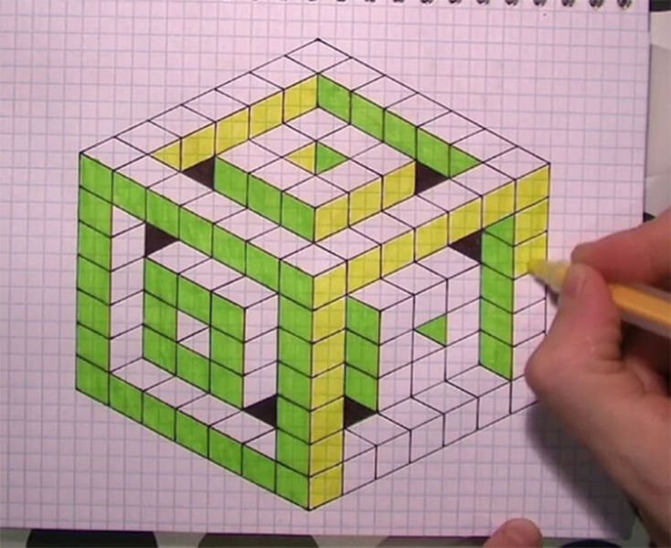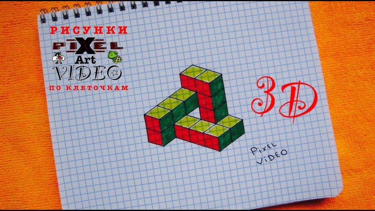 Объемные 3д рисунки по клеточкам