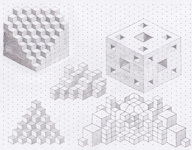 Объёмные фигуры по клеточкам в тетради