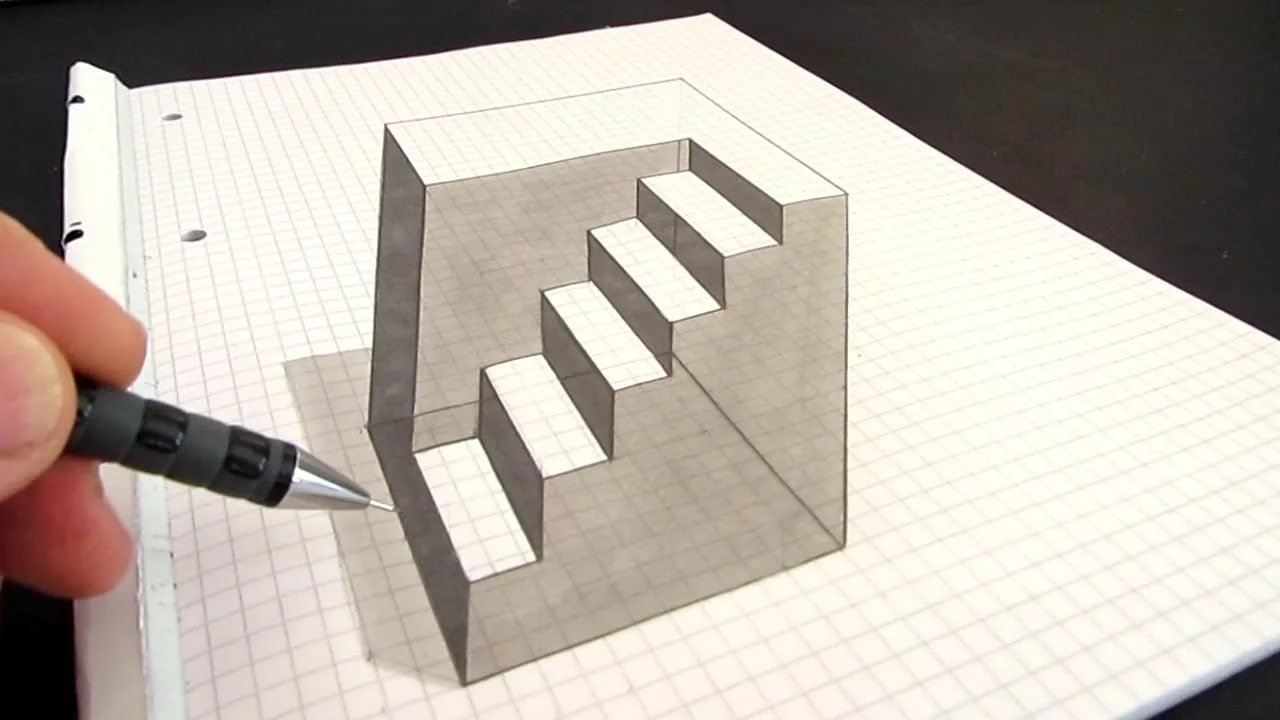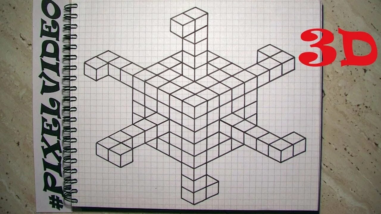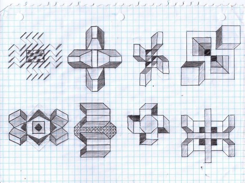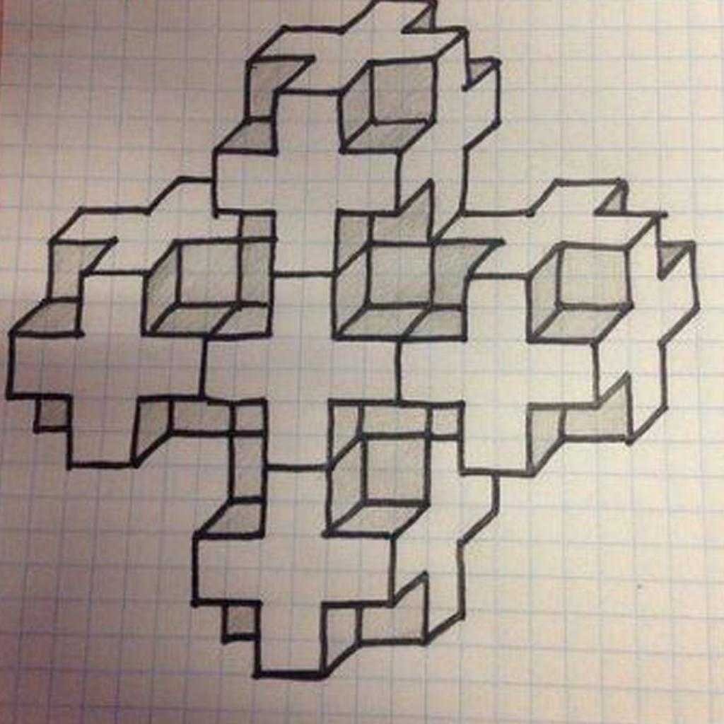 Объемные рисунки в тетради в клетку