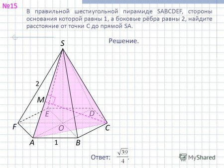 В правильной шестиугольной пирамиде SABCDEF стороны основания равны 1