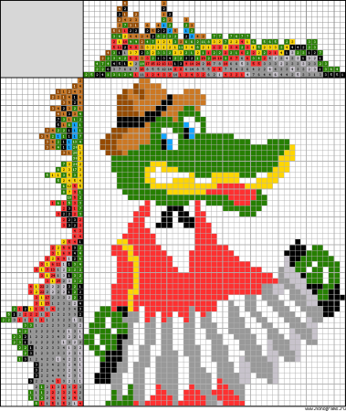 Пиксельный крокодил по клеткам