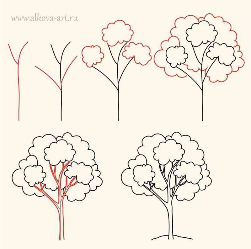 Поэтапный рисунок дерева
