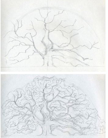 Поэтапное рисование дуба