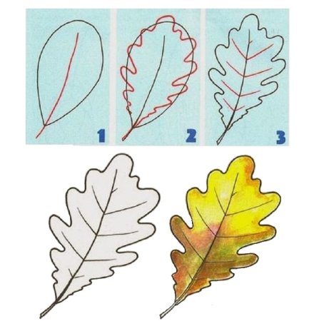Поэтапное рисование листа дуба