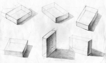 Рисунок гипсового Куба расположенного ниже уровня глаз