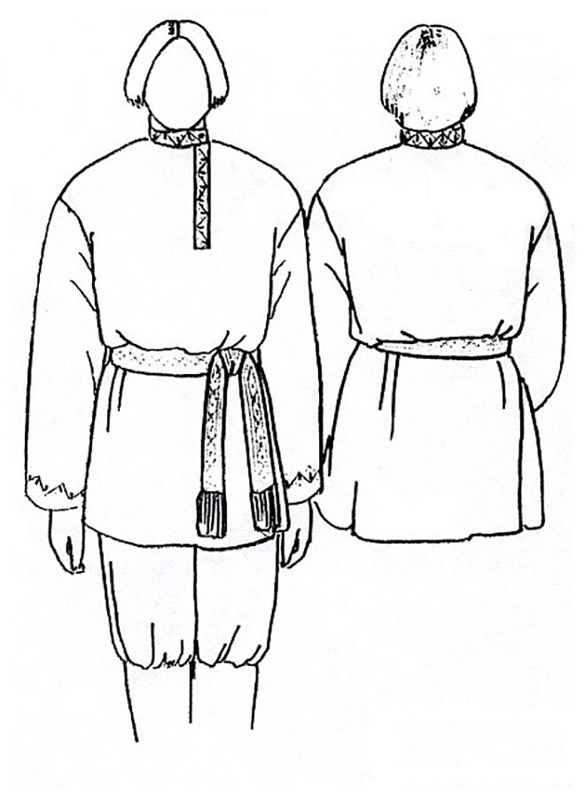 Традиционная русская одежда рубаха Порты лапти армяк зипун шапка