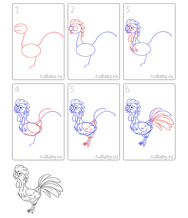 Поэтапный рисунок петуха