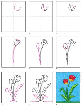Схема рисования тюльпана для детей