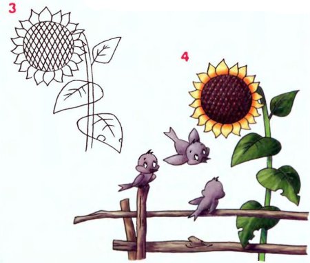 Подсолнух поэтапное рисование для детей
