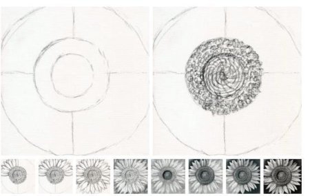 Пошаговый рисунок подсолнуха