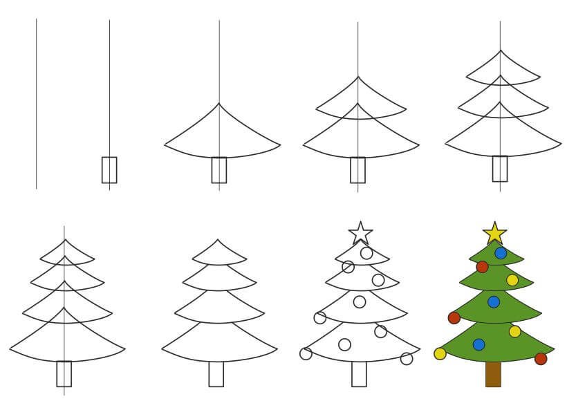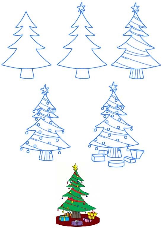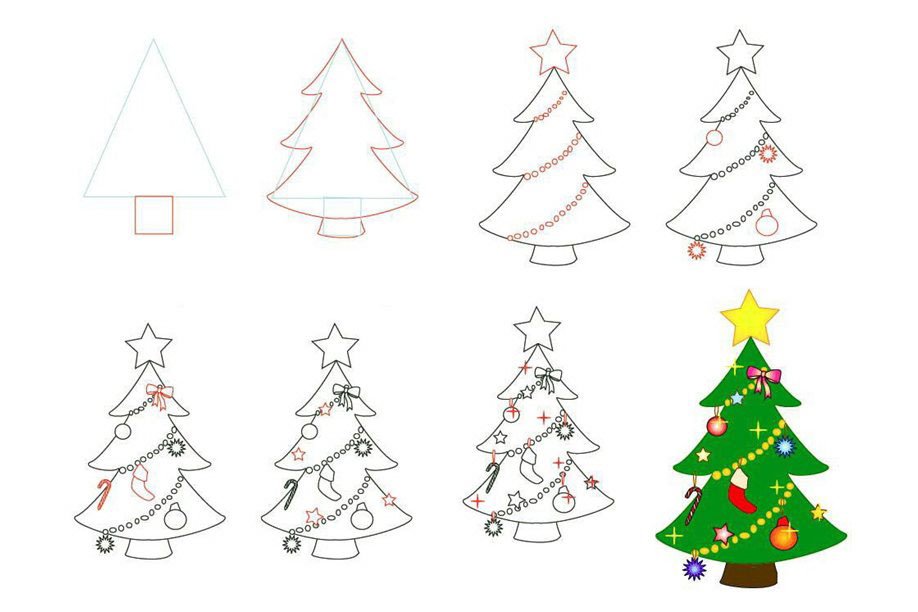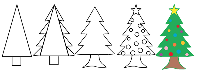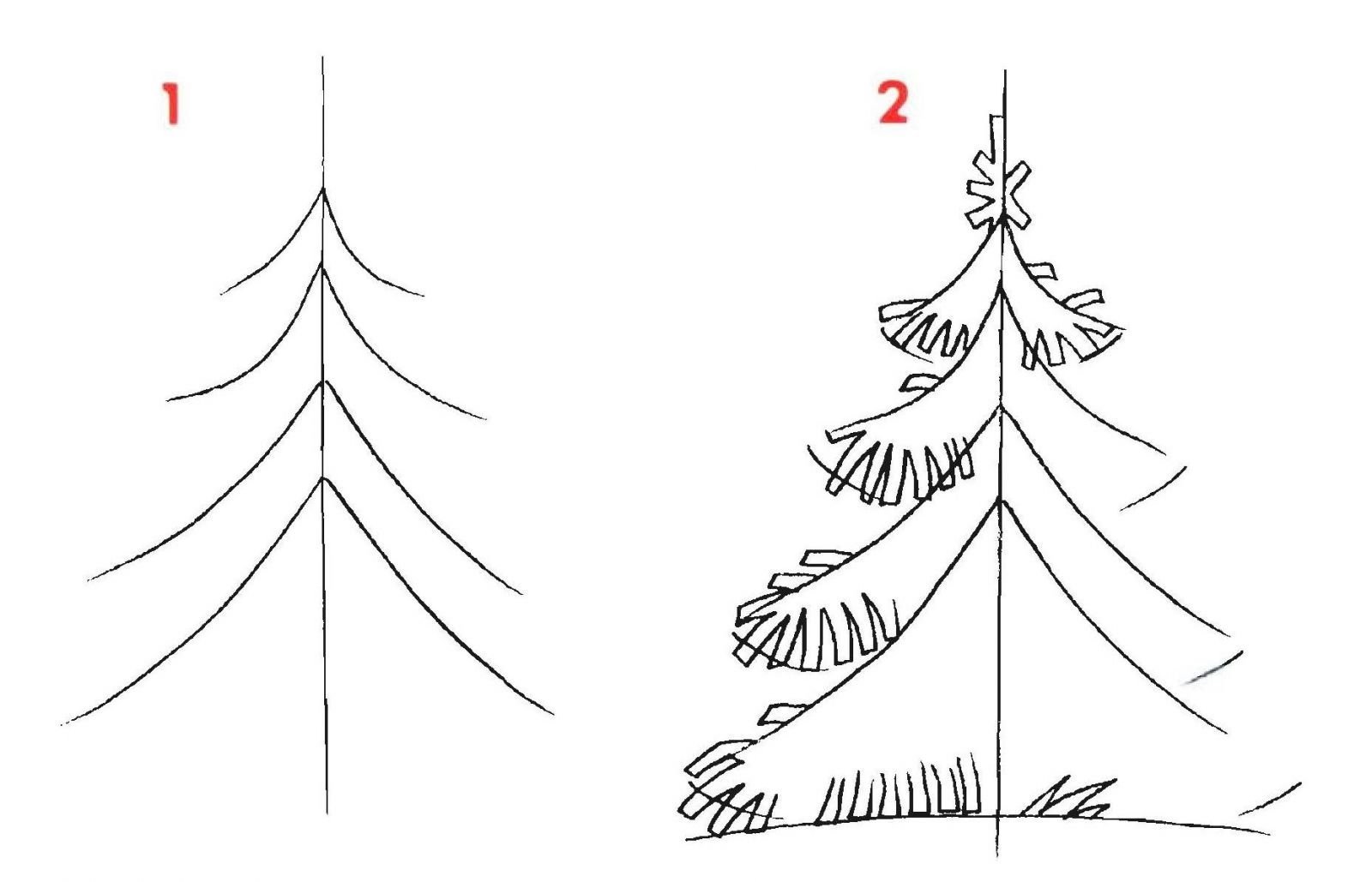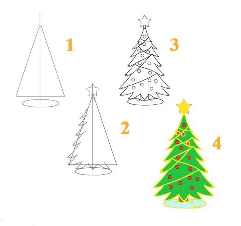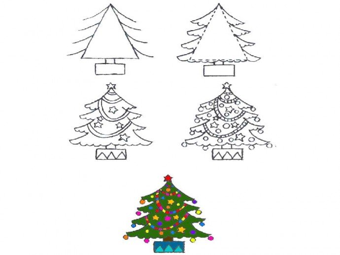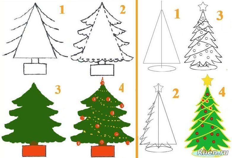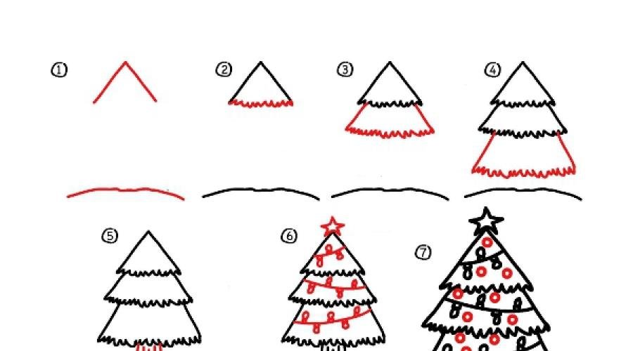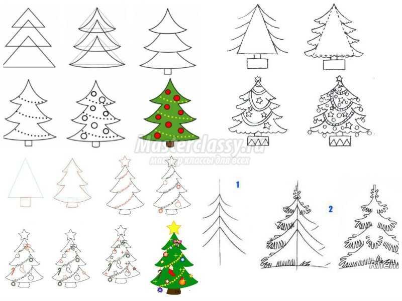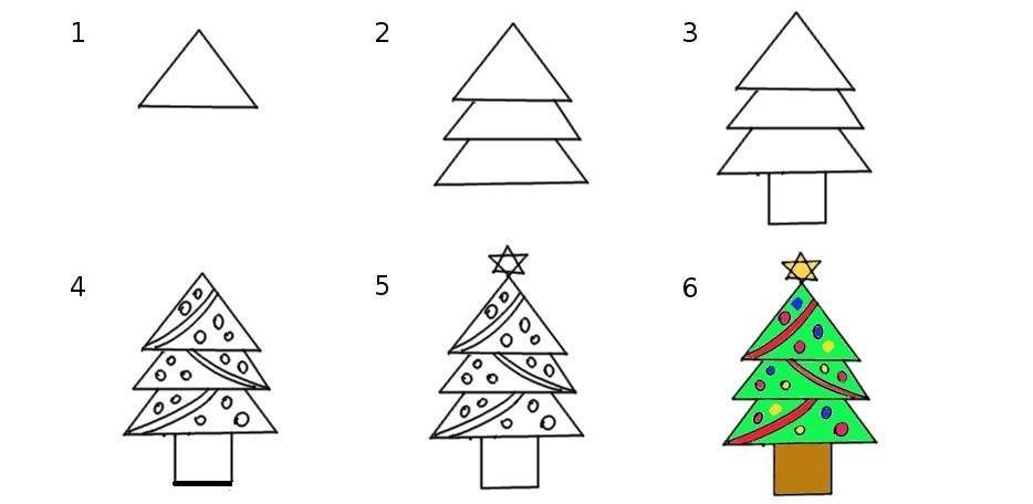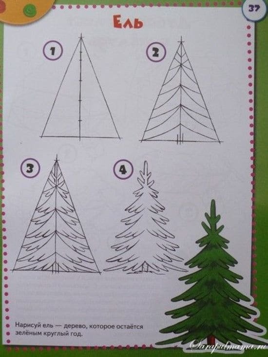 Рисование елки поэтапно для детей