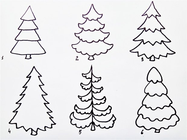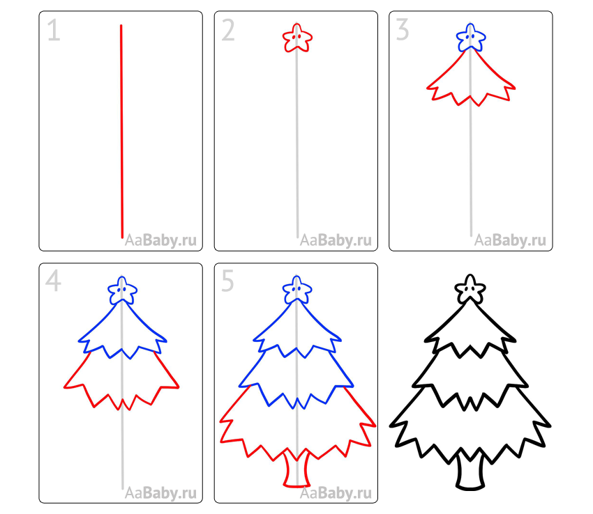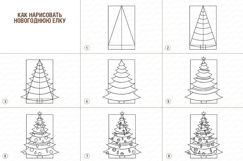 Схема поэтапного рисования ёлки