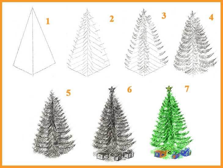 Этапное рисование карандашом елки для детей