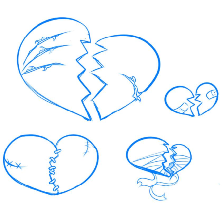 Нарисовать разбитое сердце карандашом