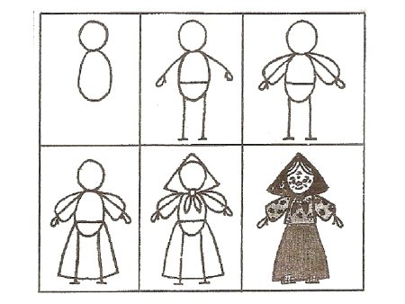 Рисование кукла в национальном костюме Комарова