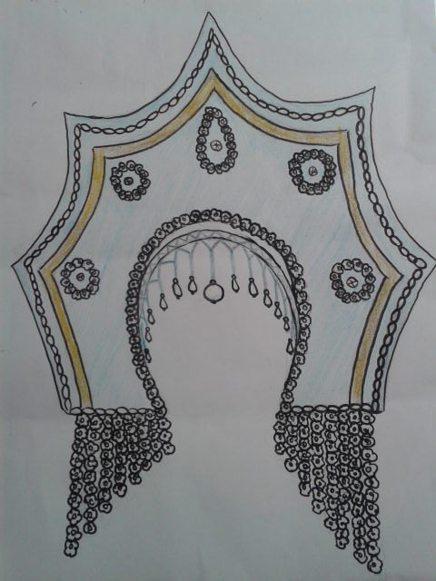 Нарисовать русский народный головной убор кокошник