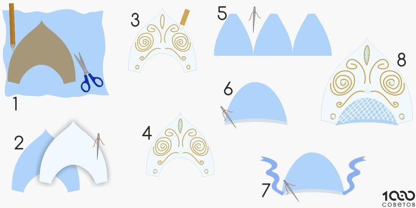 Выкройки кокошника русско народного