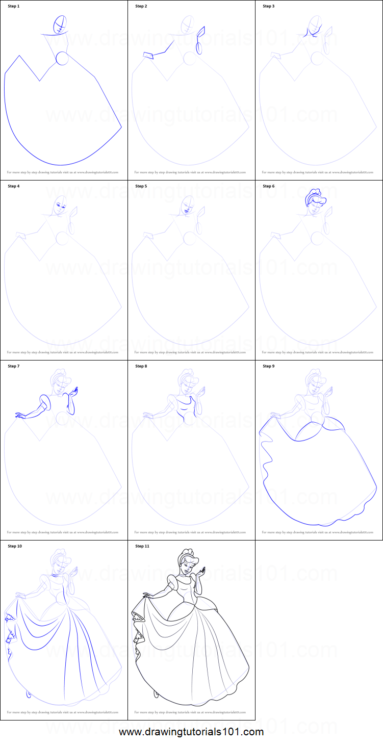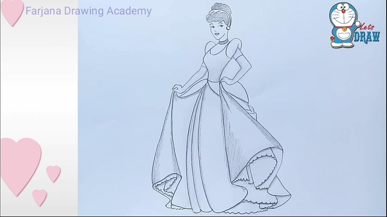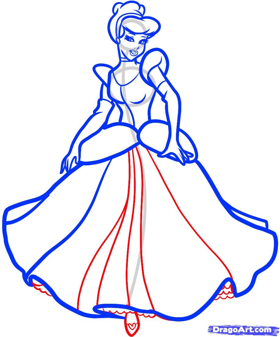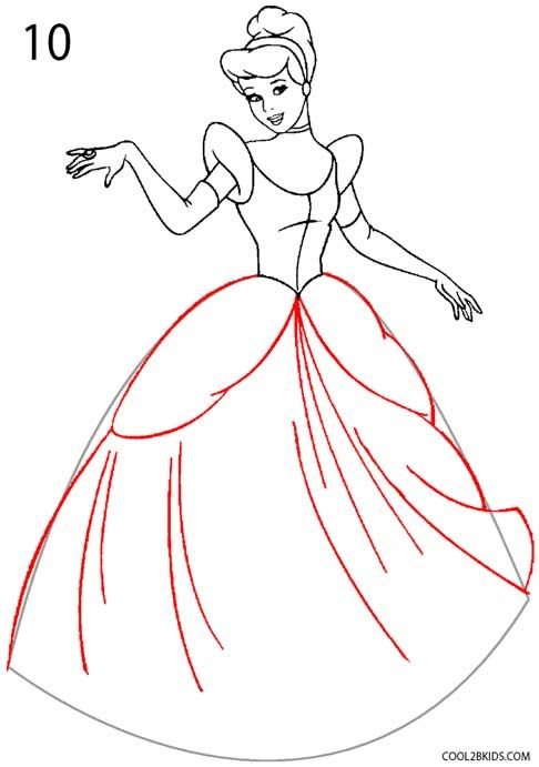 Включи как поэтапно нарисовать платье Золушки