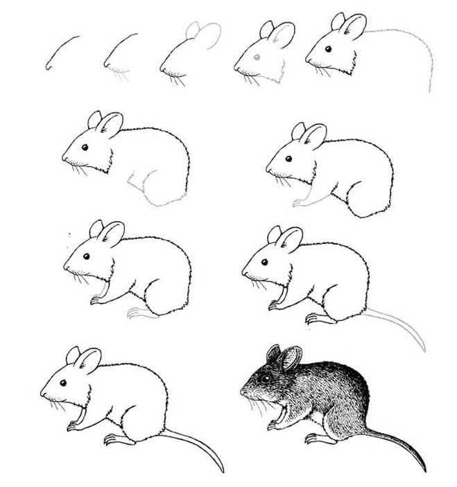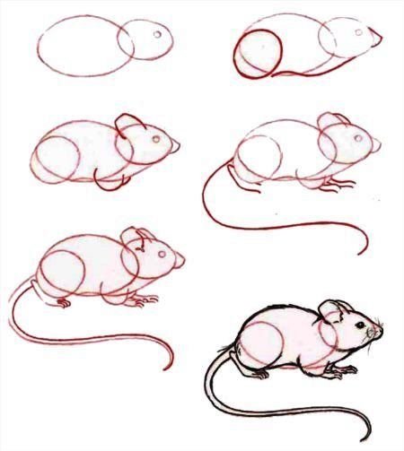 Рисунок мышки поэтапно