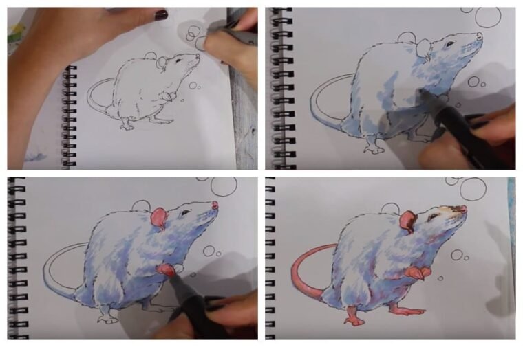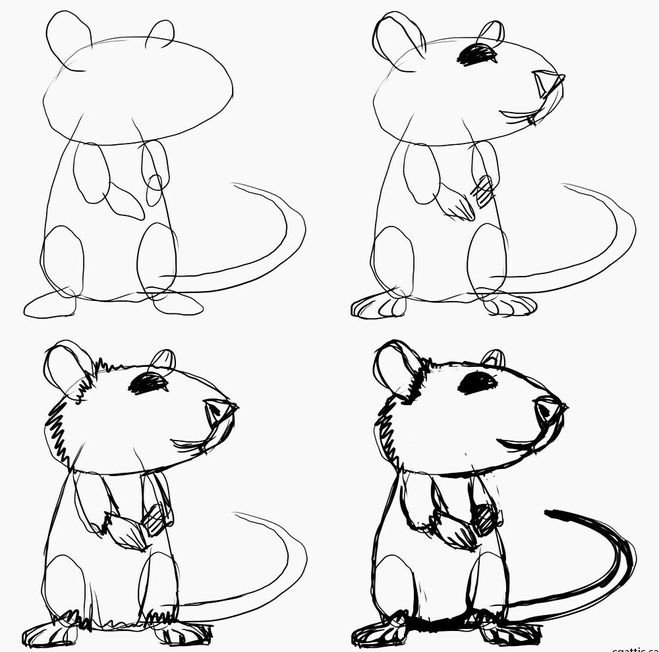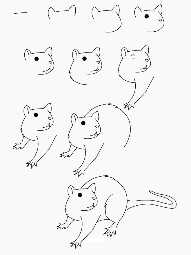 Пошаговое рисование крысы